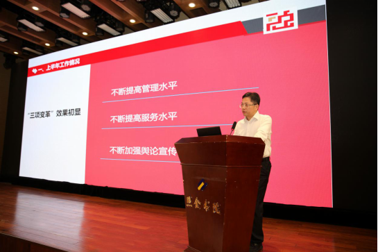 首先,集团公司总会计师穆世文做上半年经营分析报告。深入分析了集团经营业绩指标完成情况及各业务板块发展状况,并提出了下半年发展建议。