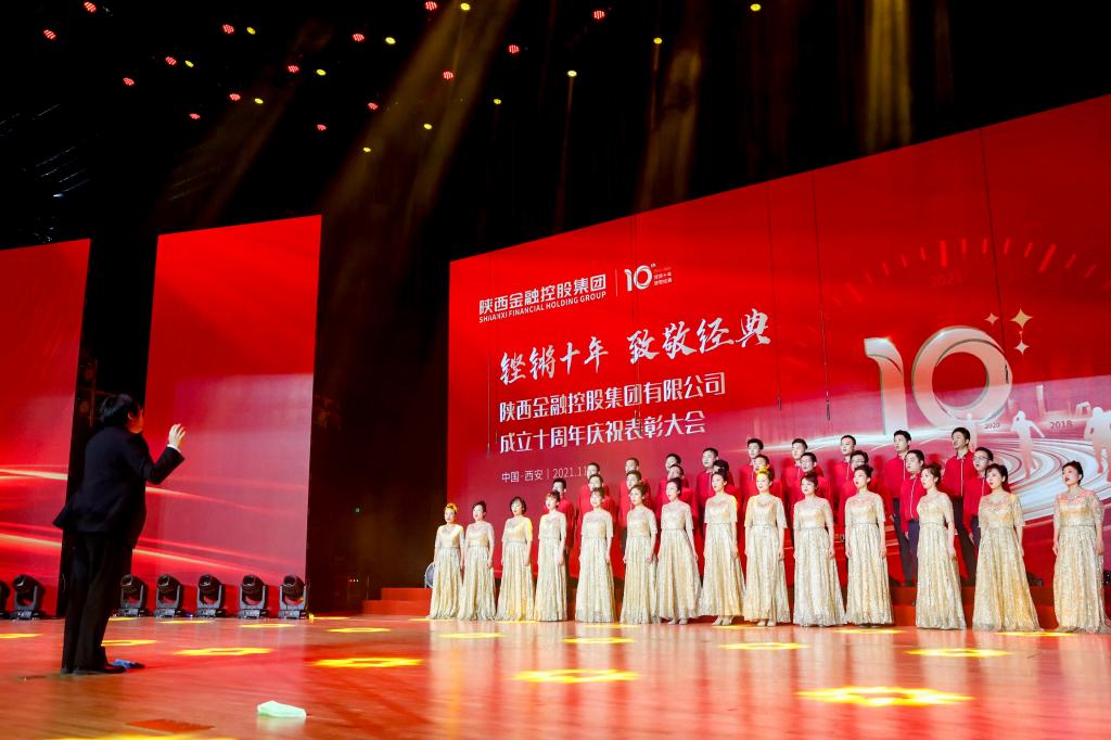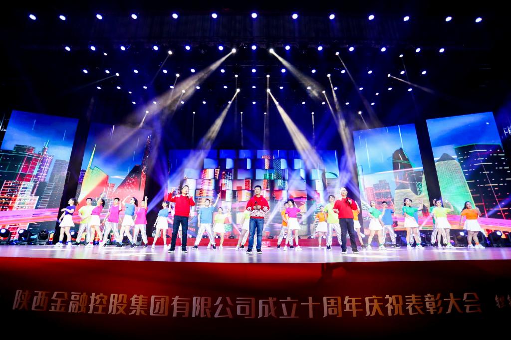 大会对曹家滩矿业、秦川机床、庆华汽车、沣东控股、中国西部科技创新港、西部超导、彩虹债转股项目、易点天下、陕西黑猫、石羊农科等十个经典投资项目进行了隆重表彰。集团系统各部门、各企业通过《美丽中国梦》《新时代金控人》《幸福是奋斗出来的》《北京的秋天》......等一个个精彩纷呈的文艺节目向集团成立十周年献礼,展现了集团系统干部员工充满活力、积极进取的良好形象,现场气氛热烈、掌声不断。