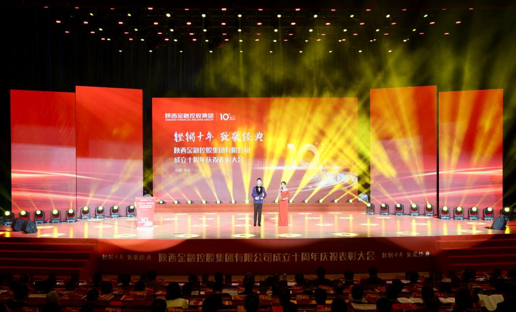 十年砥砺前行,书写壮丽诗篇!十年磨剑成锋,铸就金控辉煌!11月15日,“铿锵十年 致敬经典”陕西金融控股集团成立十周年庆祝表彰大会在陕西宾馆大会堂举行。省财政厅、省委直属机关工委、省国资委等省级相关部门领导,银行、券商等客户代表,集团公司领导班子成员,离退休干部代表及集团系统员工欢聚一堂,共襄盛举,回顾十年发展历程,表彰经典投资项目,共绘未来发展蓝图。