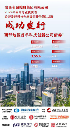 2022年面向专业投资者公开发行科技创新公司债券于6月14日成功发行,发行规模3亿元,发行期限3年期,票面利率3.55%。本期科创债是上海证券交易所《公司债券发行上市审核规则适用指引第4号——科技创新公司债券》5月20日发布后,西部地区发行的首单科技创新公司债券。