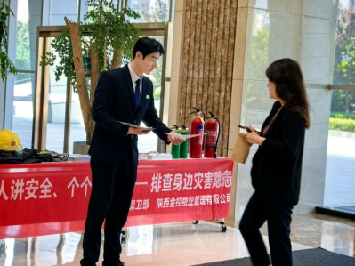 一楼大厅设置消防安全展示台,陈列灭火器、消防面罩、应急救援工具等设备,工作人员现场演示灭火器使用方法,提升员工消防安全意识。办公楼主出入口布置防灾减灾主题展板,以图文结合形式展示火灾、地震等灾害应急要点,推动安全知识入脑入心。