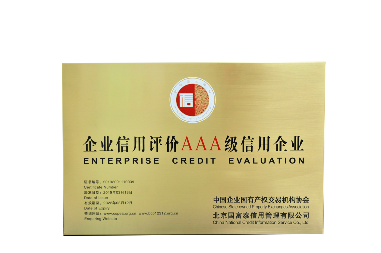 AAA级企业信用等级证书